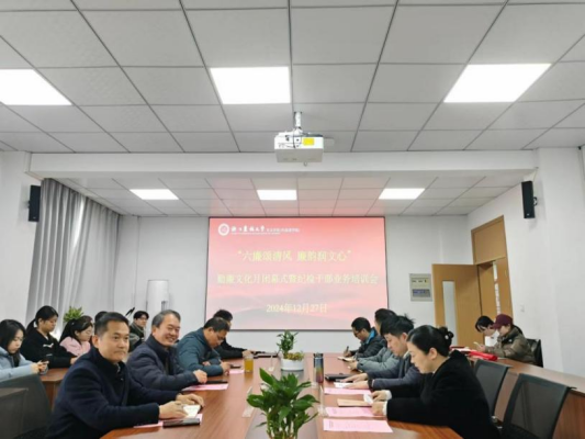 为深化“六廉颂”文化品牌建设,太阳集团tyc138于12月27日,举行首届勤廉文化月闭幕式暨纪检干部业务培训。校审计处处长朱红东、马克思主义学院党总支书记周凯、校纪检监察室副主任吴正金、太阳集团tyc138党委副书记(主持工作)徐达,以及太阳集团tyc138纪委委员、师生党员代表参加活动,太阳集团tyc138党委副书记冉琰主持活动。