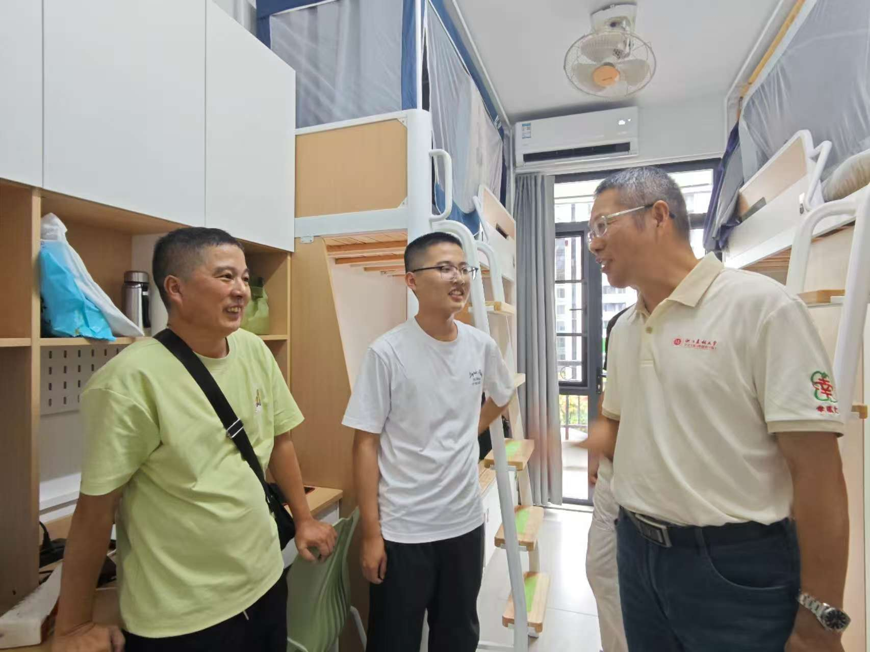 学院领导一行深入2025级新生宿舍,亲切走访慰问刚刚入住的同学们。领导们与新生及家长亲切交流,细致询问入学适应情况,并勉励大家尽快融入集体、开启精彩的大学生活。