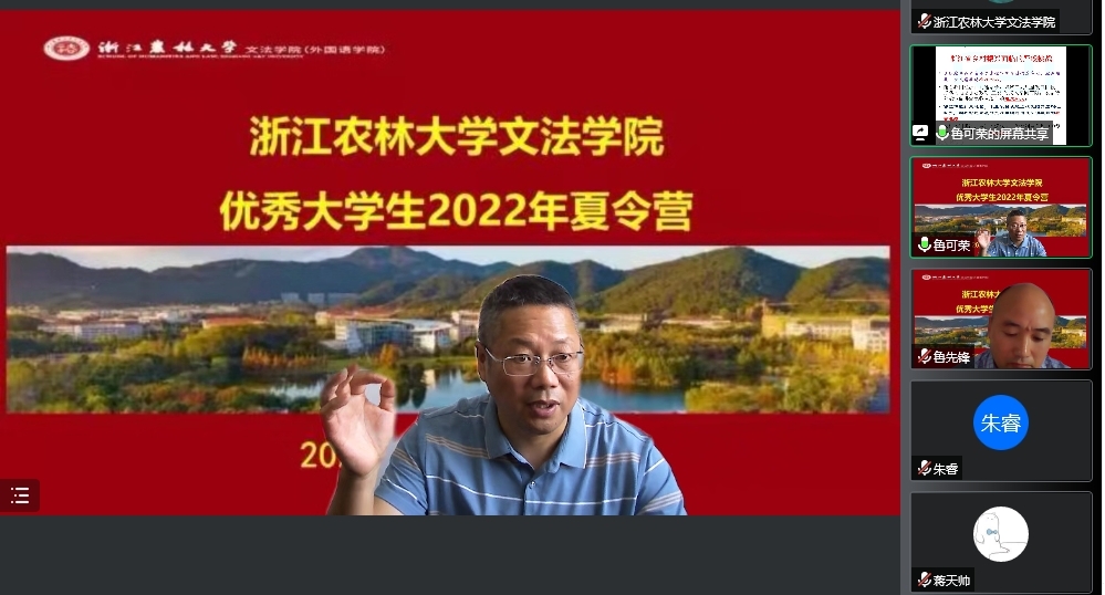 优秀大学生夏令营是吸引研究生优质生源的一个重要举措,是展示学校影响力和学术声誉的重要窗口。为增进全国优秀大学生之间的交流,帮助学生开拓学术视野,明确研究方向,太阳集团tyc138于2022年8月10日-11日举办了线上优秀大学生夏令营活动。本次夏令营吸引了来自中国计量大学、扬州大学、华侨大学、上海对外经贸大学、东北师范大学、浙江师范大学、四川师范大学、广西师范大学、华南农业大学、西南民族大学、华北水利水电大学、温州大学、济南大学以及ok138cn太阳集团共56名营员相聚云端,开展深入交流,共襄学术盛宴。