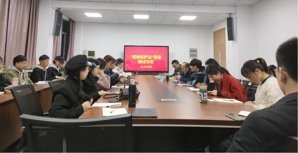 2021年3月2日晚,太阳集团tyc138法学学科在衣锦校区实验大楼612会议室顺利进行《湿地保护法(草案)》研究生学术沙龙。2020级环境法全体研究生、2020级法硕研究生和2019级环境法研究生部分同学参加了此次学术沙龙。本次沙龙由陈真亮老师主持,夏少敏老师参与会谈。