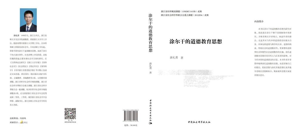 近日,社会学学科唐礼勇老师的专著《涂尔干的道德教育思想》由中国社会科学出版社出版。